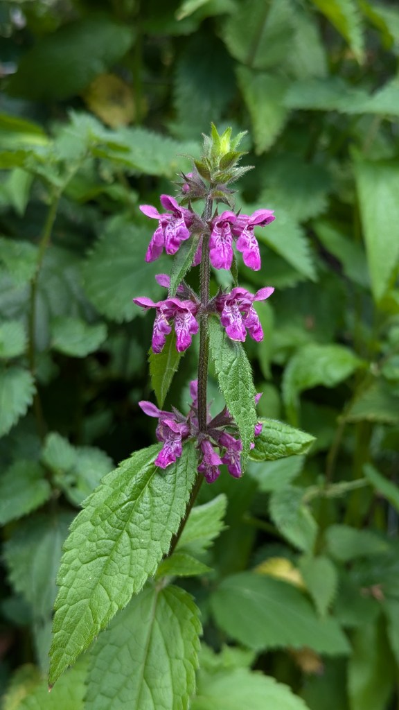 1. Hybrid Woundwort (Stachys x ambigua). It shares the characters of both parents (S. sylvatica and S. palustris), but unlike S. palustris it has leaf stalks! These plants were growing at Mitton Marsh, along the floodplain of the River Stour. 06.08.24.