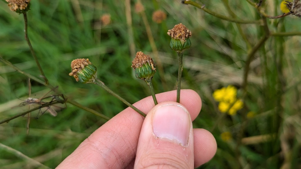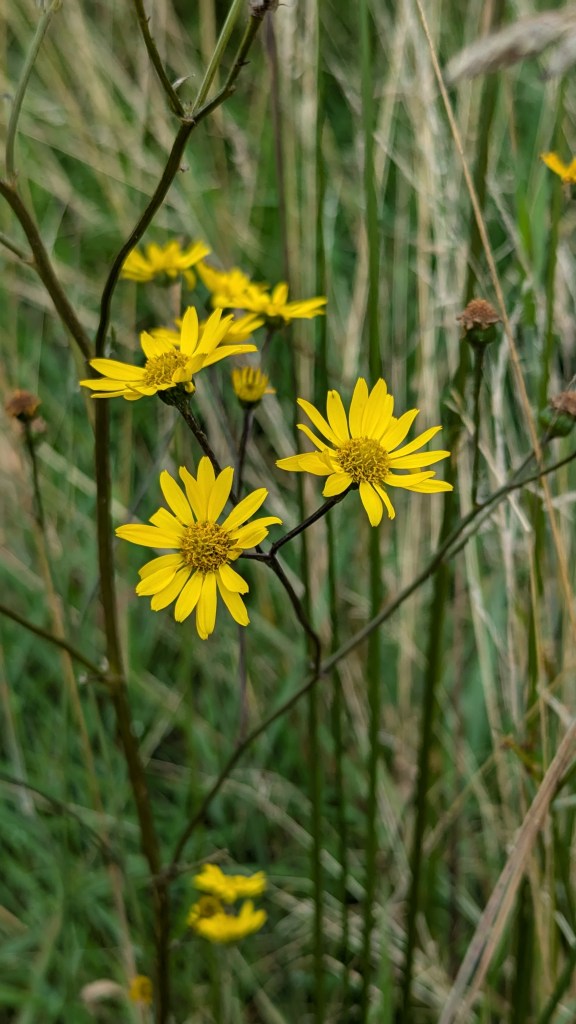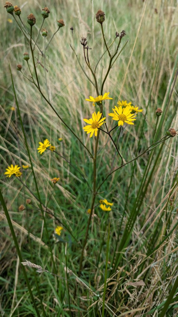 3. Marsh Ragwort (Jacobaea aquatica) from some nice rush-pasture on a site in Shropshire. It was growing in a wet transitional zone between MG10 Holcus-Juncus and M23 Juncus acutiflorus-Galium palustre rush-pasture NVC communities. I later also found a bit more of it in pure M23. The features that drew my eye to this plant were the well spaced capitula and blunt stem-leaves. 02.09.24.