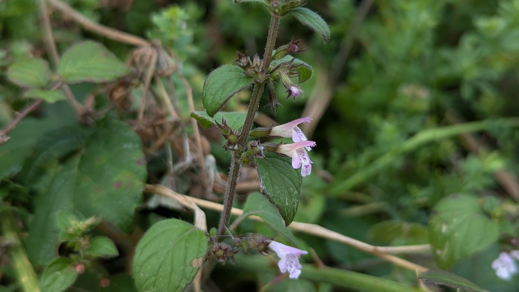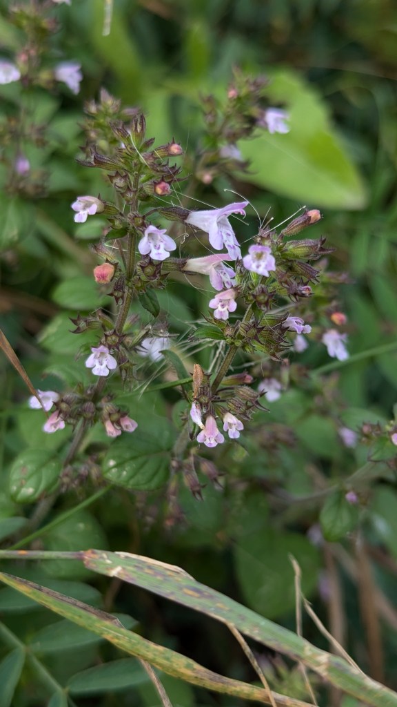 6. Common Calamint (Clinopodium adscendens) along an arable field margin / bank in Bredon, Worcestershire. This was found this along the same arable field margin that we took the NWFG to in July. I was on Bredon Hill again for work and happened across Adrian of Kemerton, who kindly pointed the Calamint out. 04.09.24. Note that the flower-clusters are not dense whorls but instead are cymes with a common stalk, the flower colour is also different. See C. acinos photo below for comparison.