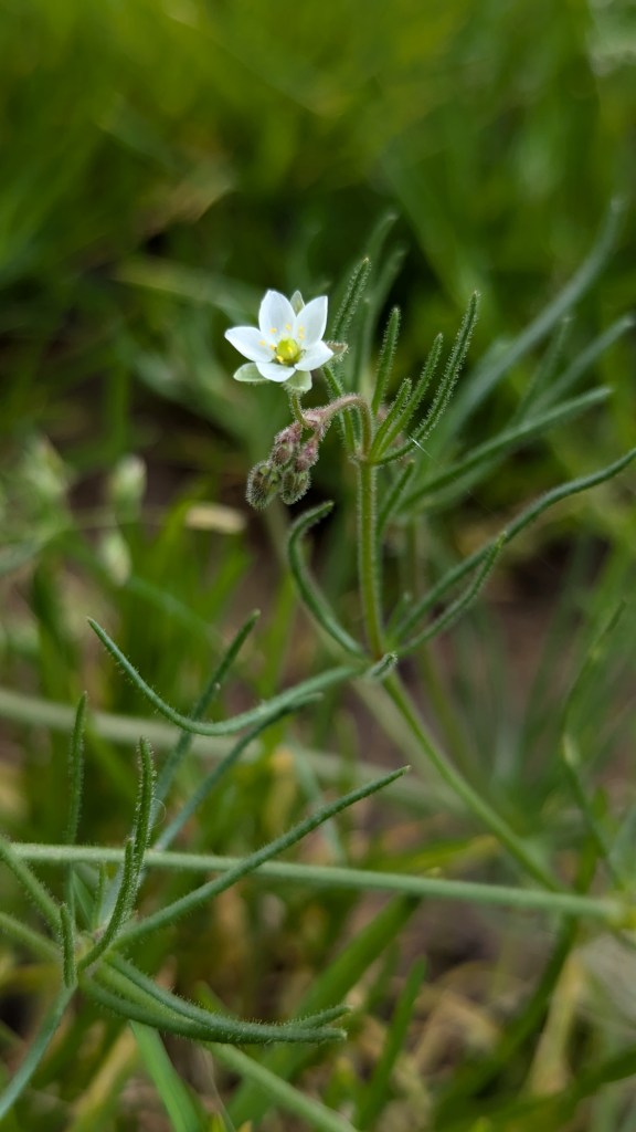 5. Corn Spurrey (Spergula arvensis) growing in abundance in farm gateway, Shropshire. GB & Eng Redlisted as Vulnerable. Site as above, but in the gateways and disturbed areas of the fields with the MG6 Lolium-Cynosurus NVC community. 19.09.24.