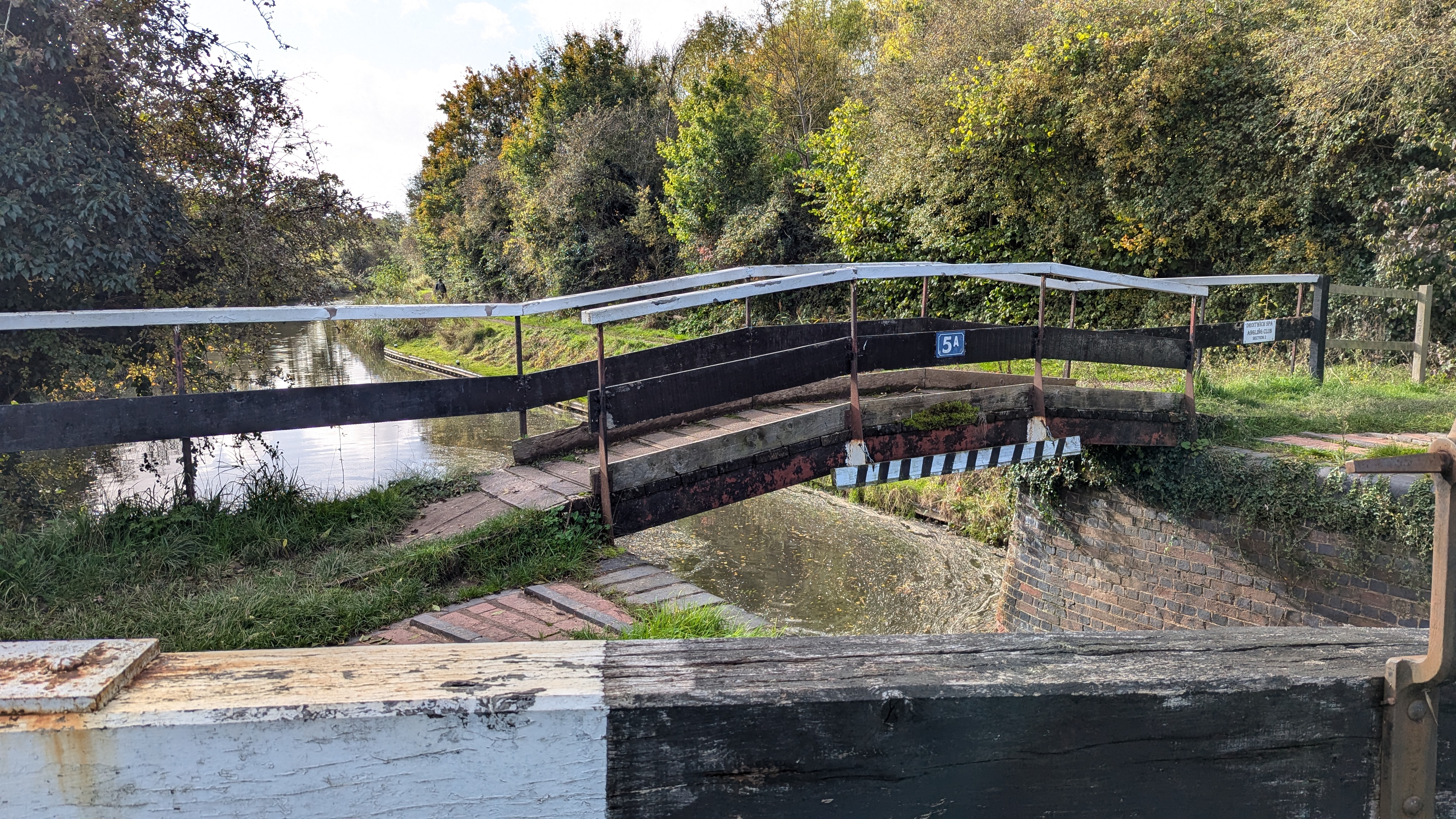 We sat on lock 5a to eat our lunch, then continued on west, past the Saturday morning fishermen at Porter’s Mill Lane and onward toward Mildenham Mill Lock.