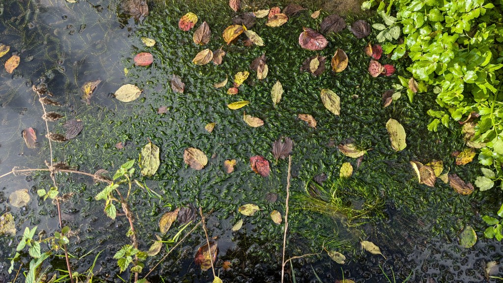 It was on this stretch that I stopped to collect some aquatic specimens from asluice between the canal and the Salwarpe. One of which was the ubiquitous Canadian waterweed Elodea canadensis, but the second species was more intriguing. It was a fine-leaved aquatic, and after the initial thought that it was a Potamogeon. I quickly realised it was more likely to be a horned pondweed or a Zannichellia (See section 2 below ‘Horned Pondweed’).
