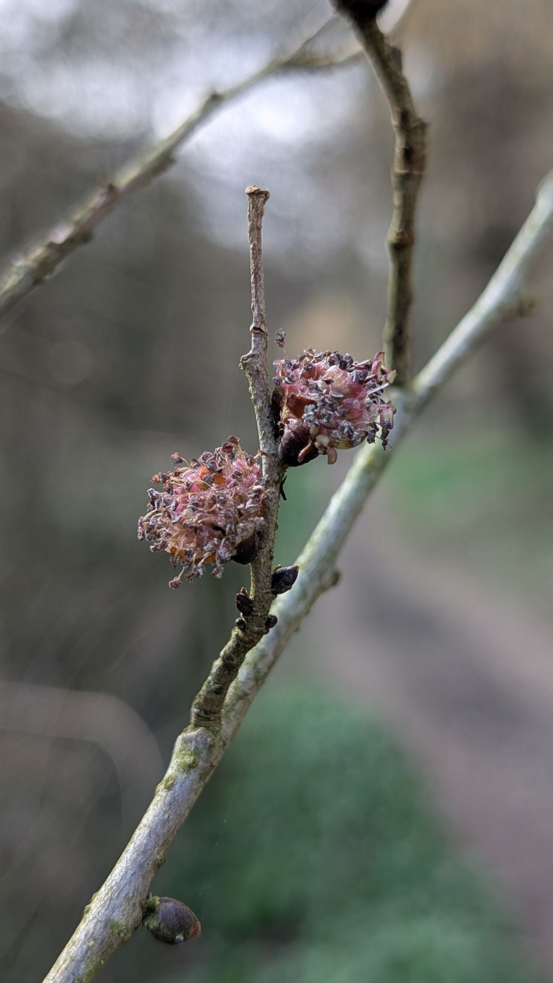 After a visit nearby to look for yellow star of Bethlehem (and failing to relocate it). I headed over to Knapp and Papermil for a wander through and out the other side to Alfrick. Wood anemone Anemone nemorosa was just starting to flower in the ancient wooded areas, a fallen elm was flowering adjacent to the footpath.