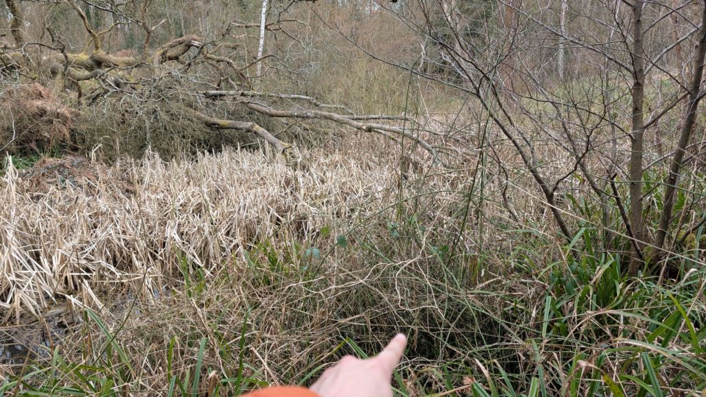 After a lap of the pond and Typha swamp, we eventually spotted a few stems protruding from the bank.