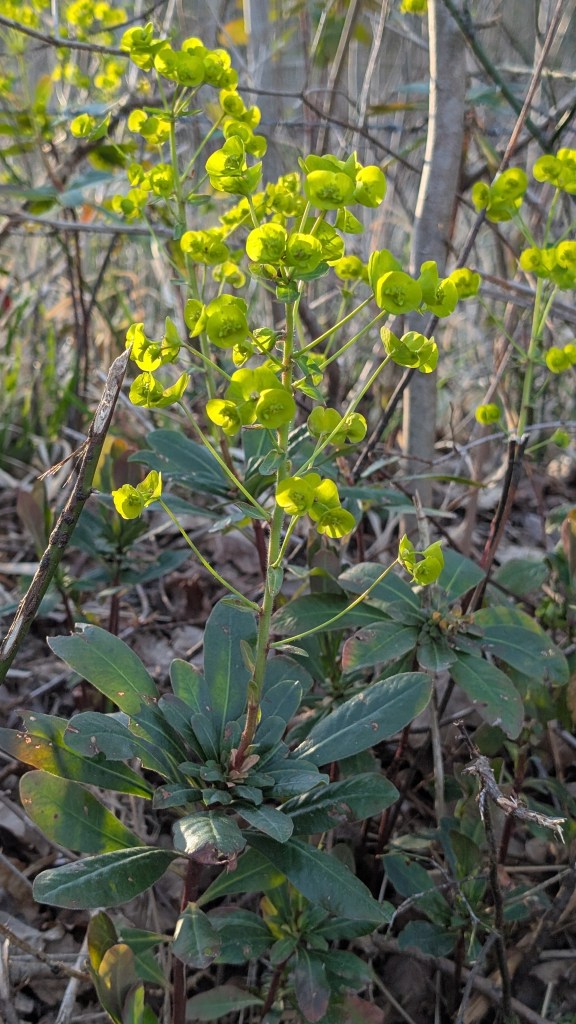 - Wood spurge Euphorbia amygdaloides subsp. amygdaloides along the roadside at Monkwood NR. 01.04.25.