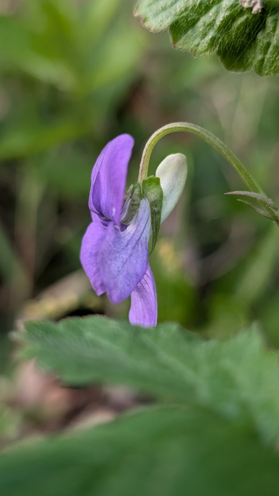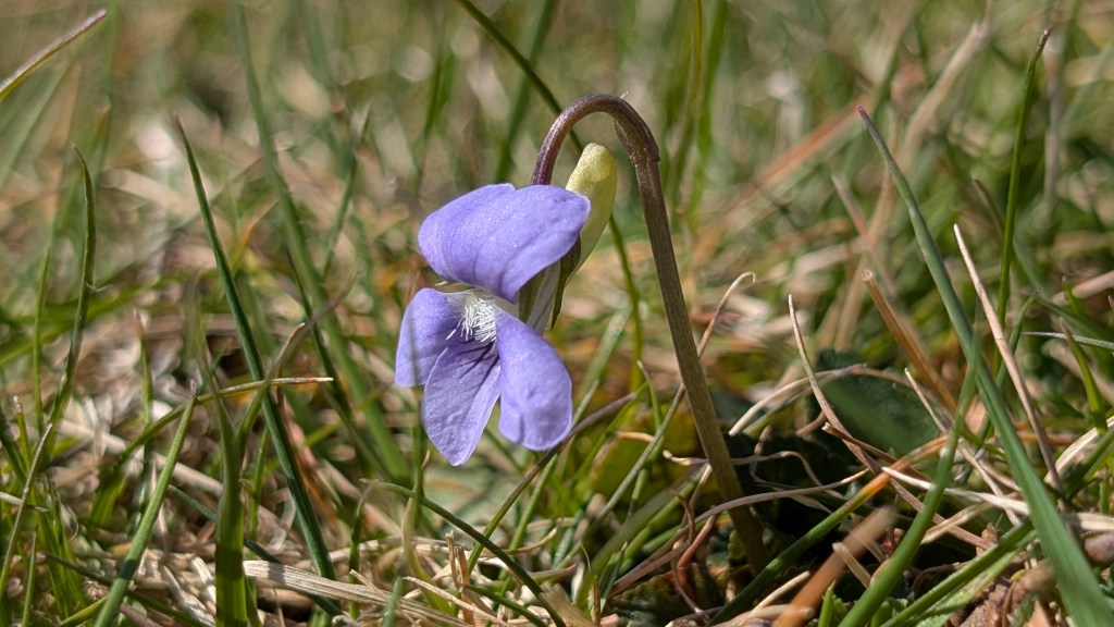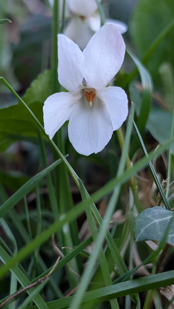 - Sweet violet Viola odorata var. imberbis (white form with mauve spur). Hartlebury Castle. 03.04.25