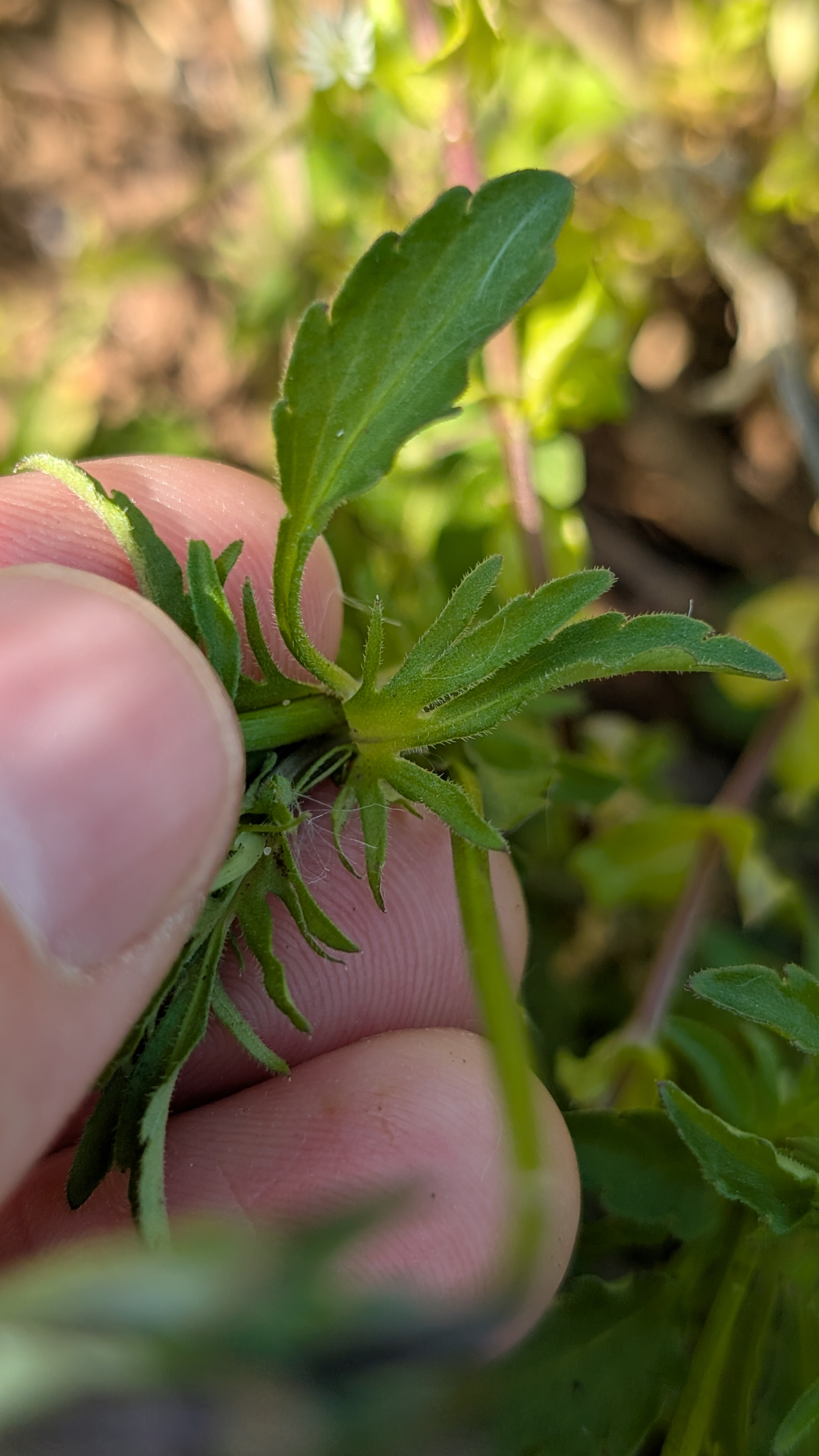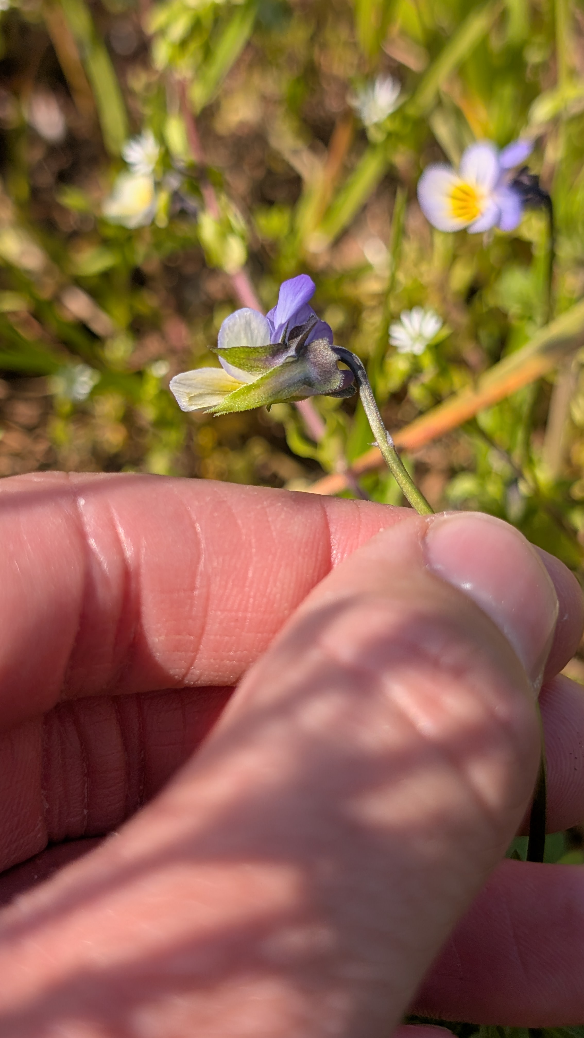 The other find that felt interesting, and is still a query was a violet growing in an arable field in Warwickshire at Elm’s Farm. Initially I thought it was Viola tricolor, but after consulting the BSBI violet handbook I’m considering Viola x contempta due to the colouration, the longer sepal length and blue-grey pedicel arch. I need to get this checked by the referee. I’ve provided a photo of ‘good’ Viola arvensis for reference below the three potential V x contempta photos.