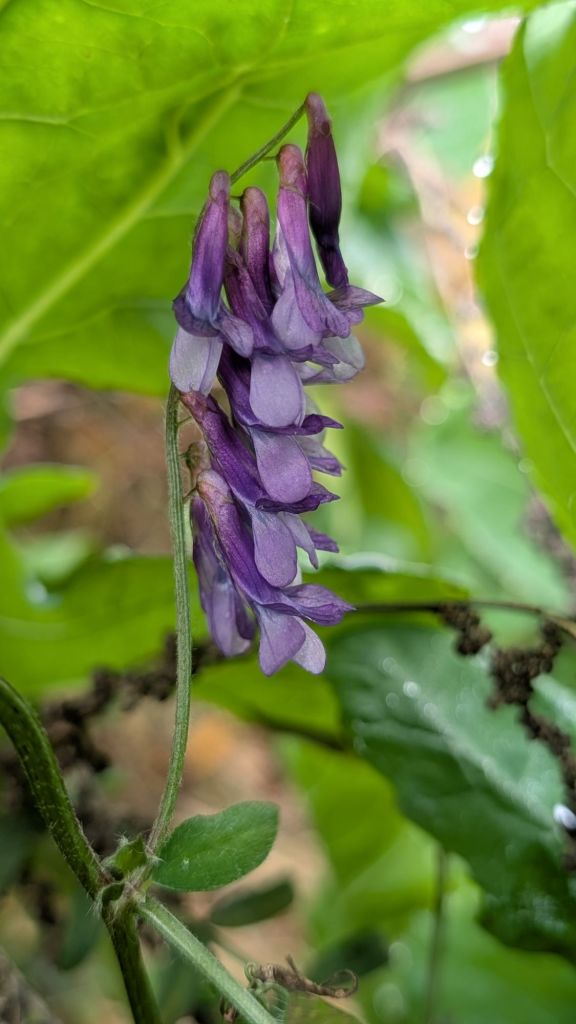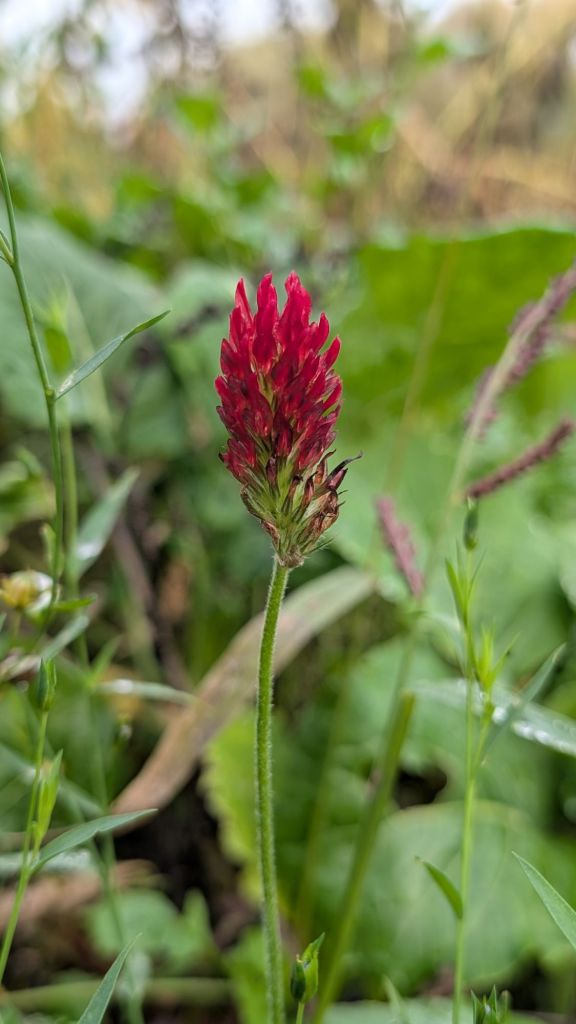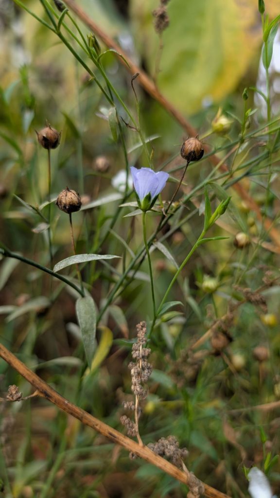 Fodder vetch Vicia villosa, Crimson clover Trifolium incarnatum and Flax Linum usitatissimum from an arable bird mix. Leigh, Worcestershire. 07.11.25