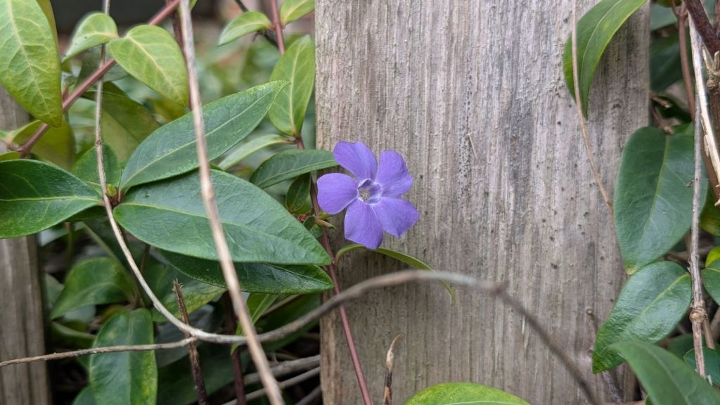 Peeking periwinkle – Sandstone pick marks – a Stoic tree – Ivy berries – Old rocks with a view – Cliff plants